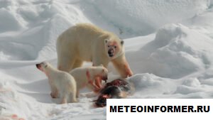 Polar Bear and cubs with their «kill»